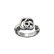 This sterling silver ring, with an aged finish, features the now recognizable Double G, the symbol sits atop a key which is formed into a ring. Expertly made and intricately designed, often with subtle nods to the House, Gucci's silver jewellery collection is presented in an array of contemporary and classic pieces. Double G key detail. Arabesque engraved edges. Double G: 11.4mm x 13.1mm. European size 14.