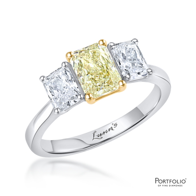 • Three Stone 1.06ct VS1 Yellow Diamond Platinum Ring