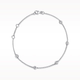 18ct white gold bracelet with five brilliant cut diamonds in rub-over settings, complete on a 7.5" chain, can be worn at different lengths. Total diamond weight 0.25ct.