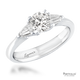 Platinum three stone ring, with a brilliant cut diamond centre weighing 0.70ct, and one taper cut diamond on each shoulder. Total diamond weight: 1.00ct.