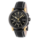 The G-Chrono watch is defined by the iconic G-shaped bezel, paying homage to the House. The contemporary design lends a modern, sporty look. Featuring a black and light yellow gold PVD case with black guilloché dial, complimented with a black leather strap.